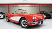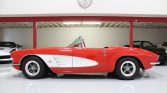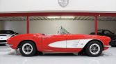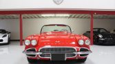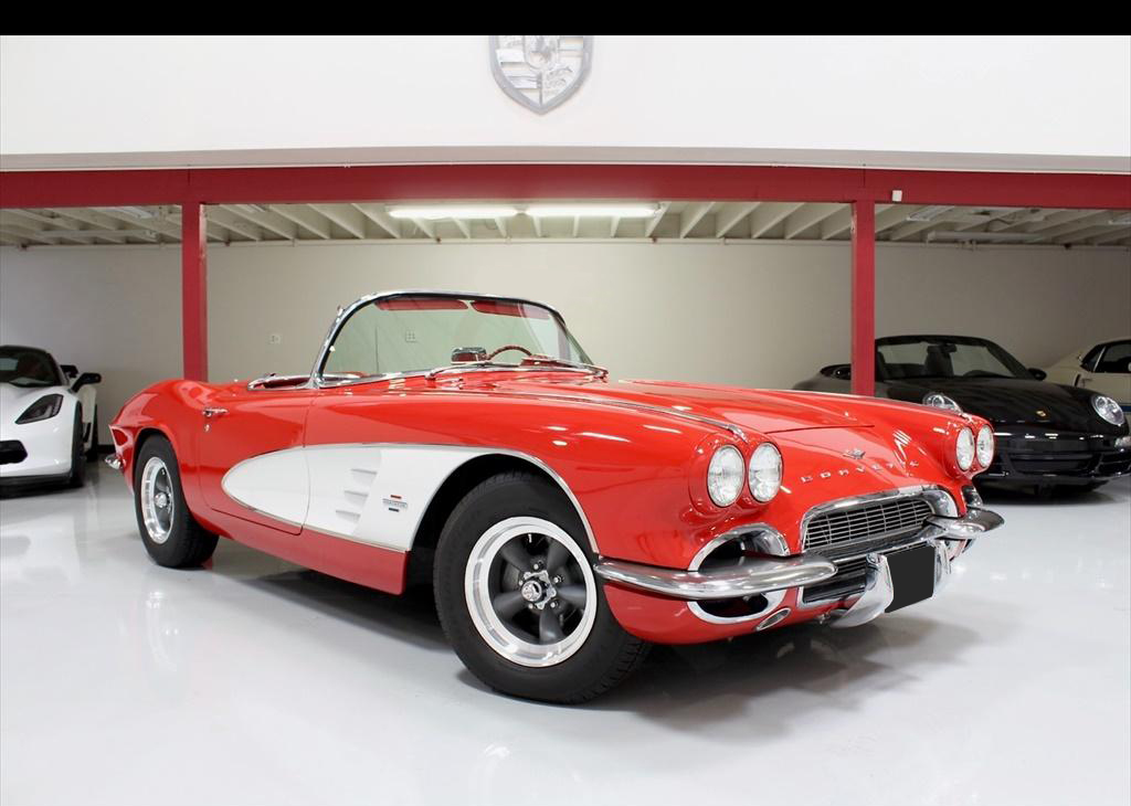 1961 Chevrolet Corvette in Roman Red over Red Interior. Equipped with a 327ci Engine mated to a Muncie 4-Speed Manual Transmission. Just 5k miles since restoration and rebuilt engine. Fresh paint job within the last 3 years. Brand new convertible top just installed. Vintage Air A/C blows cold. SSBC Disc brakes in the front. Aluminum radiator. Hurst shifter. AM/FM Radio, 6-Disc CD changer, and Sirius XM Radio. Two sets of wheels included; American Racing 15″ wheels and stock wheels with hubcaps and white wall tires. This incredible Corvette runs and drives as good as it looks.