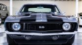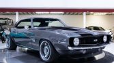 1969 Chevrolet Camaro Restomod in Mercedes Graphite Metallic w/ Black Stripes over Black Interior. Powered by a built fuel injected 350ci V8 mated to a Hughs Performance 4L80E Automatic Transmission. This stunning Camaro features: Holley EFI, Vintage Air, Hooker Long Tube Super Comp Headers, Ron Davis Radiator, Rack n Pinion Power Steering, Lokar Shifter w/ Optional Manual Slap Up/Down Shift, Drilled & Slotted Wilwood Disc Brakes w/ Hydro Boost on All Four Corners, Eddie Motorsports S-Drive Pulley System, Speedtech Pro Touring Suspension w/ Tubular Upper & Lower Control Arms, Double Adjustable Coilovers on All Four Corners w/ Rebound & Compression Adjustability, Torque Arm Rear 4 Link Suspension Setup, Posi Traction w/ 3.73 Gears, Pro Forged Chrome Moly Sway Bars, All New Interior w/ Custom Console & Surround Sound Audio System, Two 12″ Rockford Fosgate Subs in a Custom Enclosed Box, Billet Specialties Steering Wheel, AutoMeter Gauges, Custom American Racing Rally Wheels and more! This no expense spared Camaro is ready to be shown or driven.