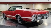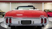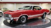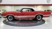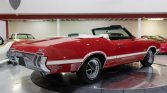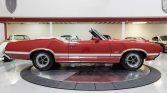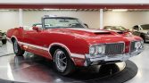 1970 Oldsmobile 442 Convertible in Matador Red over Parchment interior. Equipped with a 455ci V8 mated to a TH400 automatic transmission. Very rare options include cruise control, air conditioning, woodgrain interior trim, power top, power steering, power disc brakes, AM/FM radio, 4 spoke sport steering wheel with tilt column, factory clock in tach, Hurst dual gate his and hers shifter, bucket seat, Ram Air hood with pins, Rally wheels and more. This original 442 underwent a frame off restoration in 2003. No expense spared. Ready to be shown or driven.