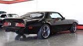 1974 Pontiac Firebird in Black over Black Leather Interior. Equipped with a 455ci V8 Mated to an Automatic Transmission. Hedman Headers, Edelbrock Intake Manifold, MSD Distributor. 10-Bolt Posi Rear End. 4 Wheel Disc Brakes. Leather Seats. Power Steering, Power Windows, Power Locks. Full Stereo System with Kicker Subwoofer and Kenwood 350W Amp. Prestige Alarm. AC and Heater. Custom Climate Control Buttons. Custom Leather Interior. Adjustable Air Suspension in the Rear. 18″ Boss Motorsports Wheels Wrapped in Brand New BF Goodrich G-Force Tires.